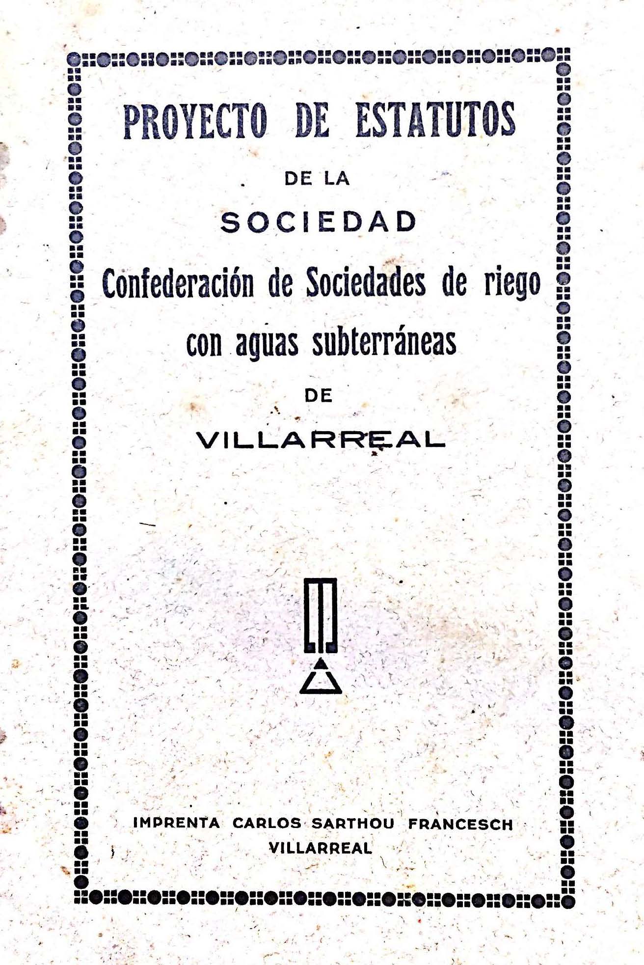 El 15 de Abril de 1926 se constituyó la Confederación de Sociedades de Riego con aguas subterráneas de Villarreal, con la finalidad de obtener las mayores ventajas posibles en precios y transporte, adquiriendo mancomunadamente carbón, lubricantes, aceites, y cualquier elemento necesario para el buen funcionamiento de los motores, bombas y demás aparatos utilizados para elevar las aguas en los pozos de las sociedades adheridas a dicha Confederación. En un primer momento fue constituida por las sociedades “San Pascual”, “San Miguel”, “Segura”, La Agricultura Moderna” y “La Bienvenida”. Posteriormente se incorporarían la mayoría de sociedades de riego de Vila-real, y algunas de Almassora, Onda, Borriana, Castelló y Betxí.